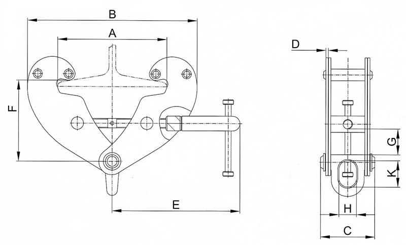 * Adjusts with ease to fit a broad range of wide-flange H or standard I beams.