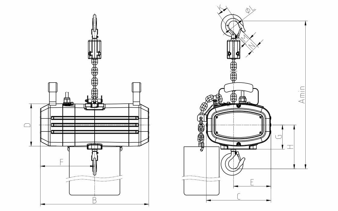 序號(hào) | 額定起重量(t) | 鏈條行數(shù) | 起升速度(m/min) | 電機(jī)功率 (kw) | 負(fù)載持續(xù)率 (%) | 起重鏈條(mm) | 凈重 (kg) | 起升高度每米增加重量 (kg) | 外形尺寸(mm) | ||||||||||||