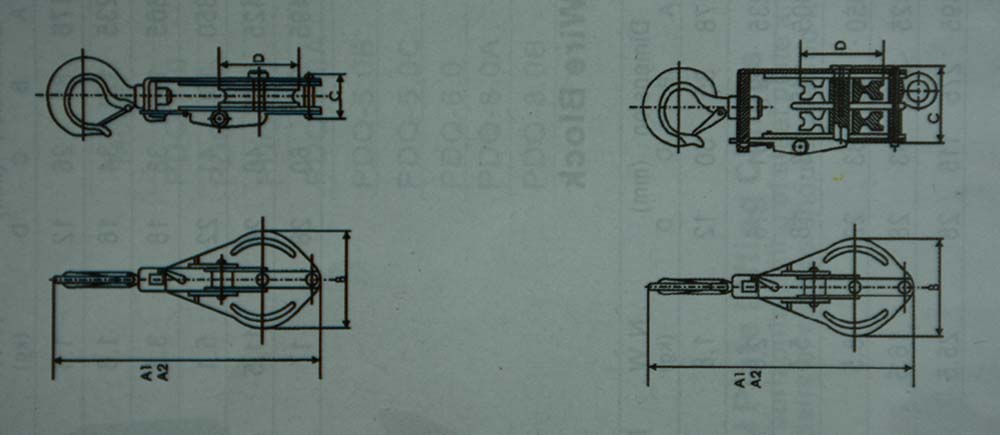 Type | S.W.L. | Sheave dia | Dimension(mm) | For wire dia | N.W | ||||
