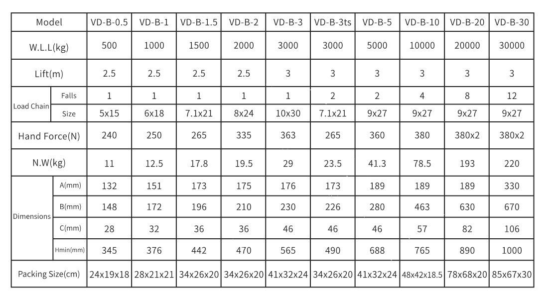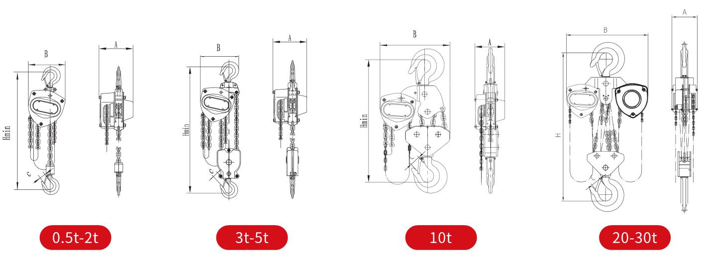 1.超載限制器 2. 不銹鋼手拉鏈 3. 高質(zhì)量專用鏈帶 4. 100級載重鏈